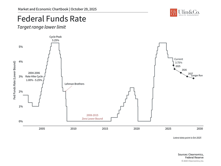 The Federal Reserve cut rates by 0.25% in October to a range of 3.75% – 4.00% and will halt balance sheet reductions in December. That’s a pivot, but not a victory lap.