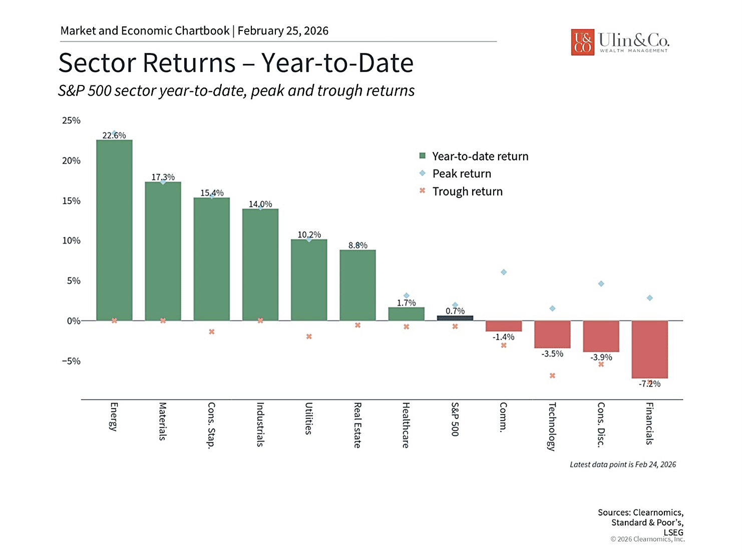 We are trimming outsized mega-cap exposure and reallocating toward durable sectors with pricing power and stronger valuation support. Materials. Energy. Infrastructure. Industrials. Staples. Health care. We also maintain meaningful exposure to international and emerging markets where valuations are lower, rate cycles are earlier, and tech concentration is smaller.
